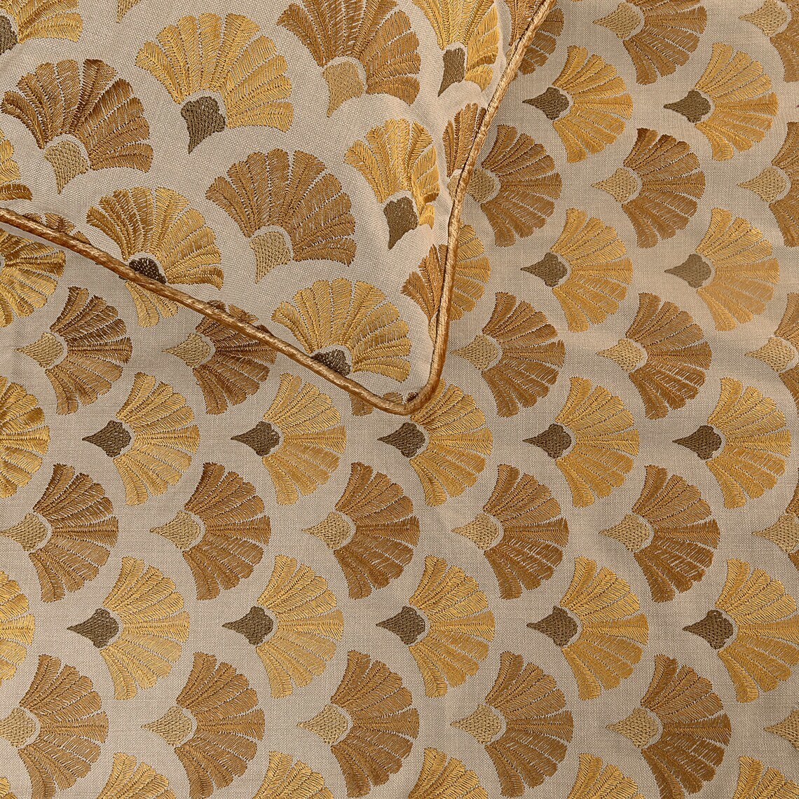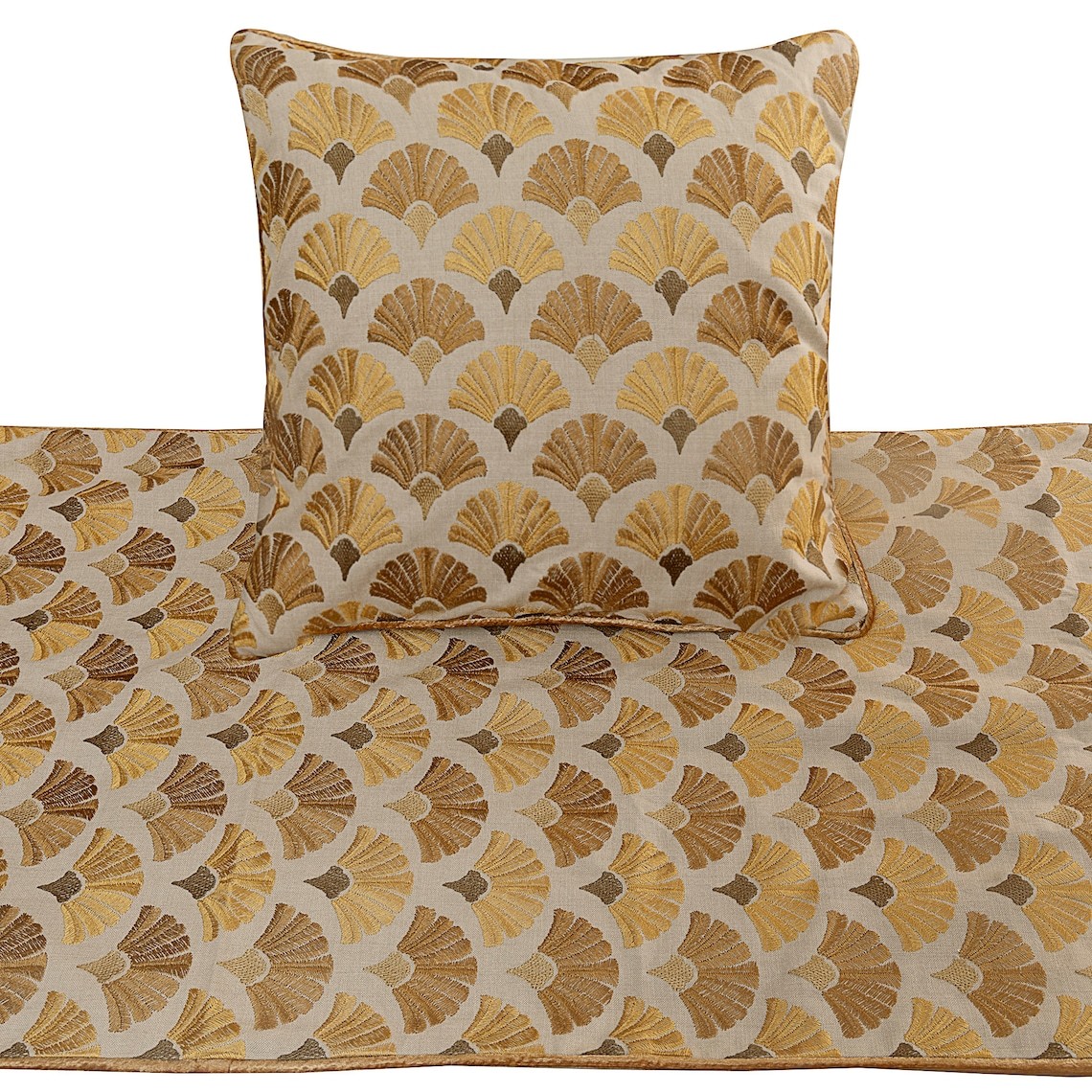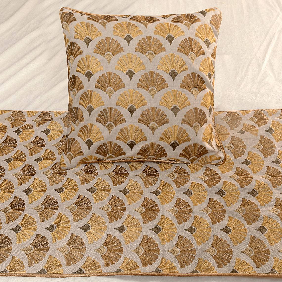 Autumn Bloom - Cotton Embroidery Beige & Yellow Gold Decorative Bed Runner and P