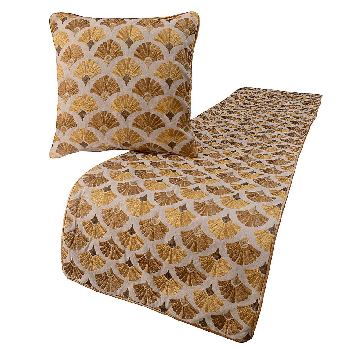 - Autumn Bloom - Cotton Embroidery Beige & Yellow Gold Decorative Bed Runner and P