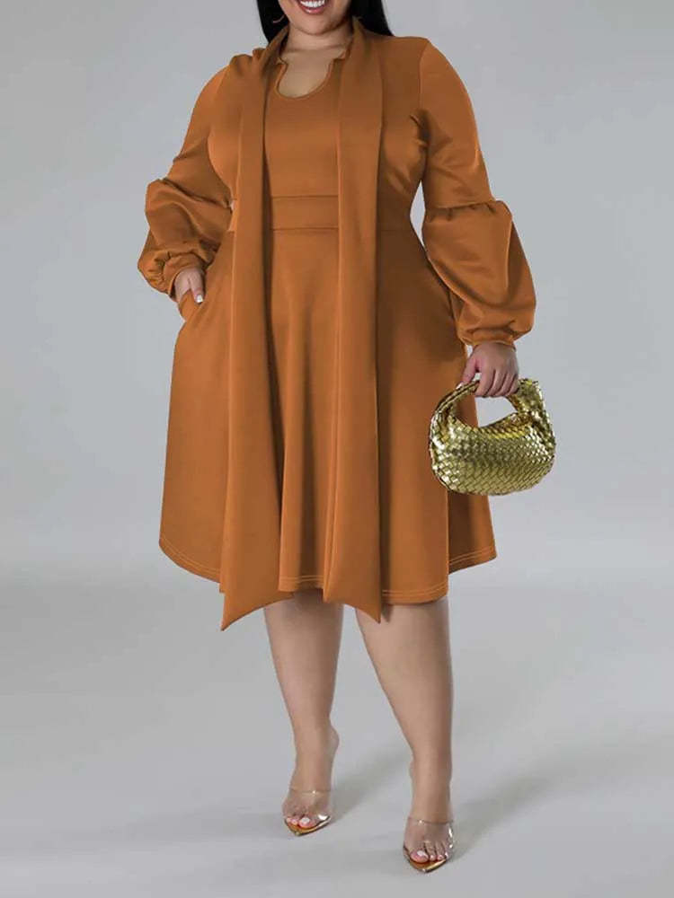 - Autumn Plus Size Vintage Elegant Long Sleeve Dress