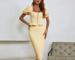 - Autumn Sexy Short Sleeve Zipper Yellow Midi Bodycon Bandage Dress