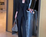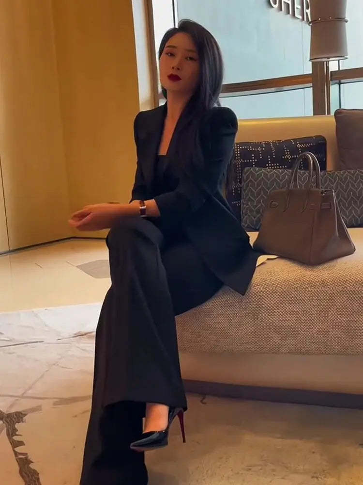 This elegant autumn/winter blazer and pant set features a single-breasted closure, providing a slight stretch thanks to the broadcloth fabric. The blazer boasts a sophisticated notched collar, while the pants offer a high-waisted, relaxed fit with a full length and flare style. Made with a premium synthetic fiber blend, this set exudes an exclusive feel. With its solid pattern and classic office lady style, it's perfect for the sophisticated woman looking to add a touch of high-end fashion to her wardrobe.