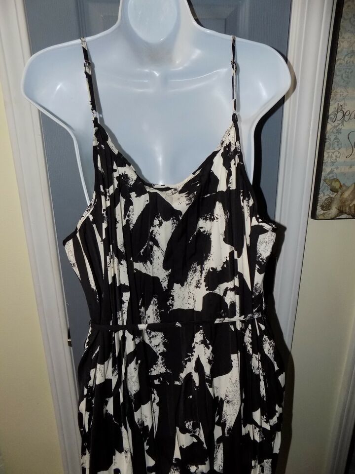 Ava & Viv Black/White Maxi Scoop Neck Sleeveless Dress Size 2X Women's NEW
