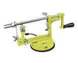 The Avanti Apple Peeler, Corer and Slicer, quickly turns apples into spiral rings that are great for cooking and snacking. Constructed from a durable solid cast alloy body with an attractive and durable enameled finish, it features a suction-cup base to prevent sliding during use. The adjustable peeler helps eliminate waste, and the ergonomic handle provides a secure, comfortable grip. Great for apple desserts, dried snacks and more.
