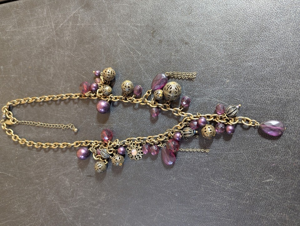 - Avenue 18" Dangle Necklace With Purple Glass Balls