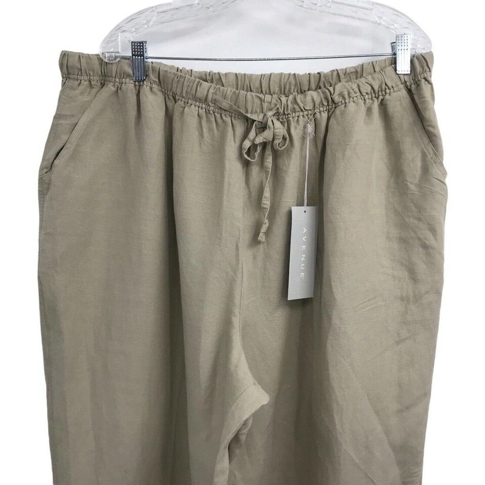 - AVENUE WOMEN'S SIZE 22/24 ELASTIC DRAWSTRING WAIST LINEN BLEND BEIGE PANTS NEW