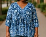 Avenue Womens Blue & White Boho Tunic Top With Button Details Size 22/24