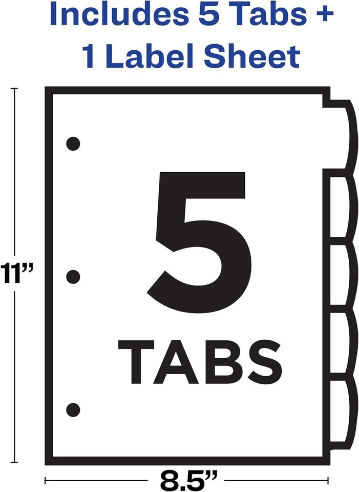 - Avery + Amy Tangerine Dividers for 3 Ring Binders, 5-Tab Set 11.13"L x 9.44"W