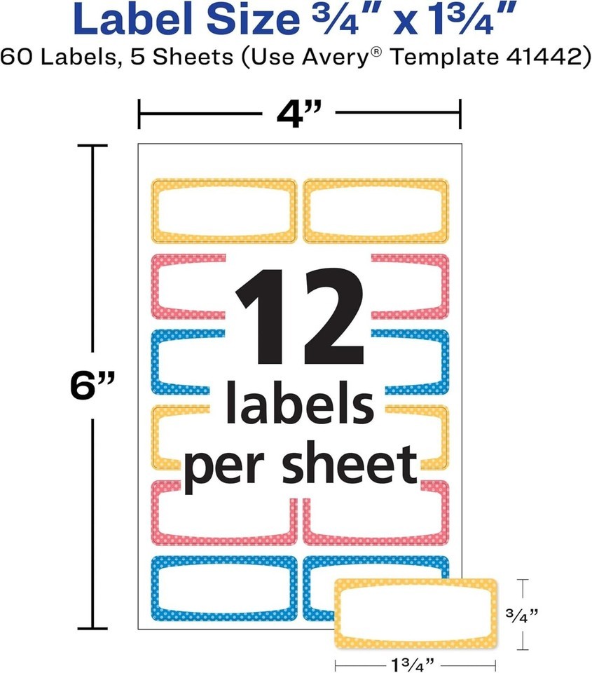 - Avery(R) Durable Labels for Gear, 3/4" x 1-3/4", Assorted 60 Labels