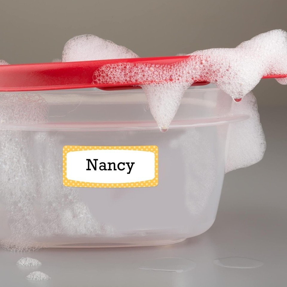 Water-resistant, dishwasher-safe and microwave-safe, these small labels are perfect as water bottles labels, labels for food containers, lunchbox labels and more