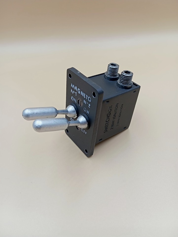 Avion de combate Spitfire de la RAF britanica era de la Segunda Guerra Mundial - interruptor Magneto - replica de plastico