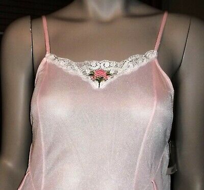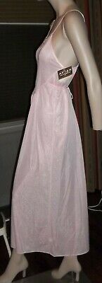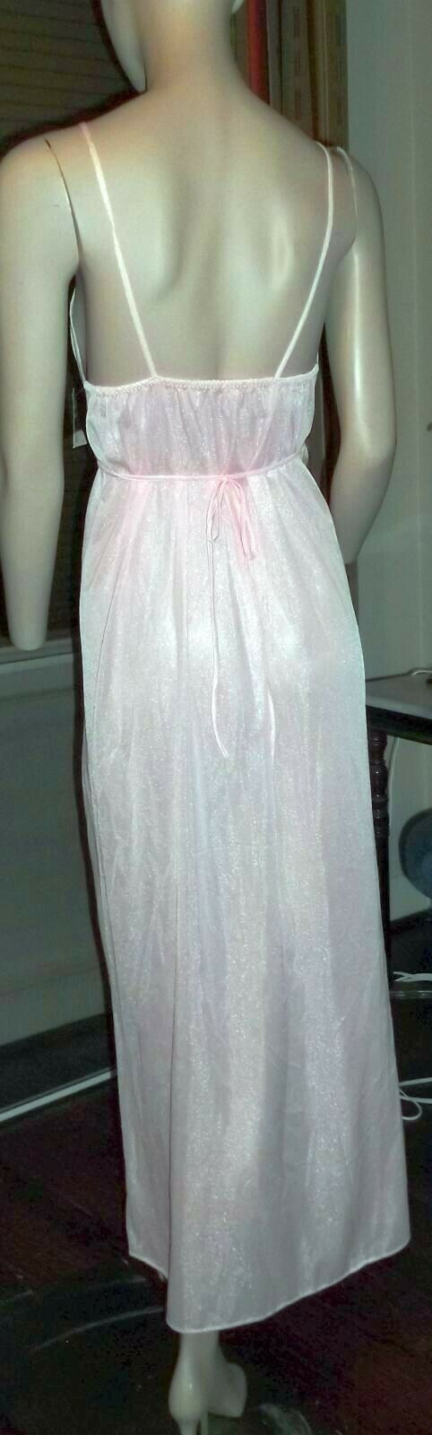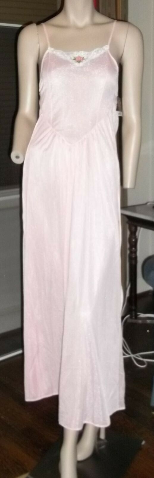 - Avian NWT Vintage 1970's Long Pink Nightgown Negligee Rose Applique Spag Straps