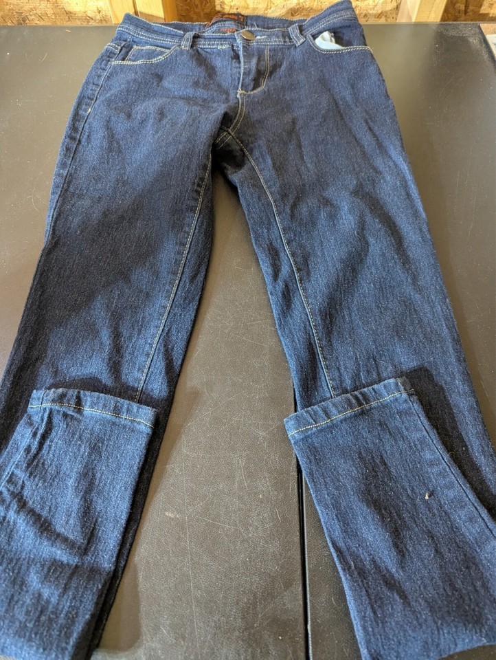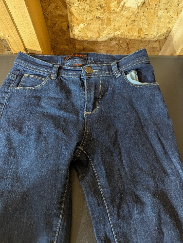 These are Aviva youth girls size 3 blue jeans made from a cotton blend denim fabric. They feature a solid pattern, zip and button closure, and have a regular fit with a 26-inch waist size and 27-inch inseam. These jeans are suitable for travel or casual wear and are machine washable. They are designed with comfort in mind and include pockets for convenience. Perfect for all seasons, these straight-style jeans are easy to care for.