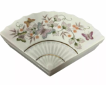 Avon Asian Fan Trinket Box Jewelry Box Storage Porcelain Floral Butterfly Gift