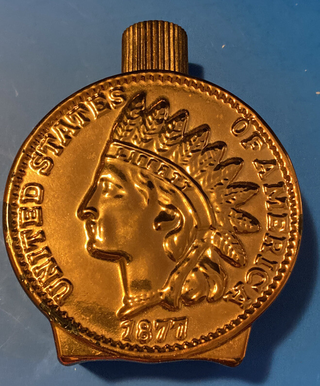- Avon Bravo Aftershave Coin 1877 Indian Penny 4 oz Empty Collectable Bottle