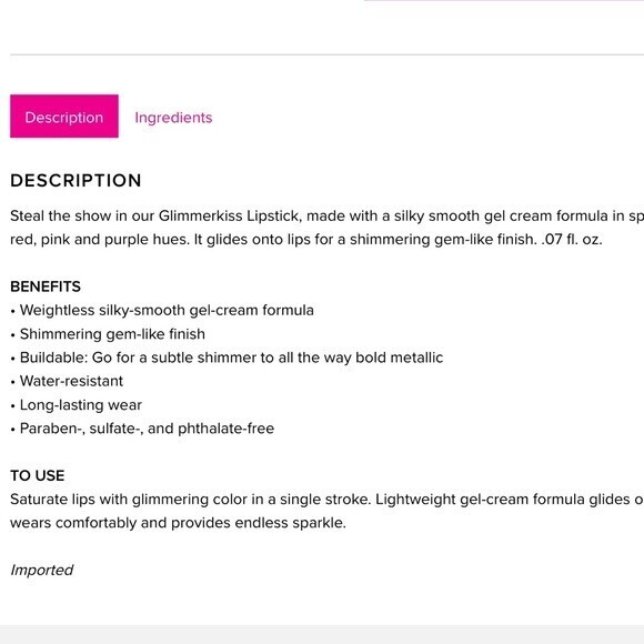 This long-wearing liquid lipstick glides onto lips for a shimmering gem-like finish in a single sweep.