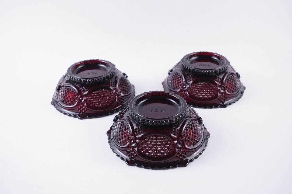 - AVON RUBY RED CAP COD SET of 3 dessert bowls