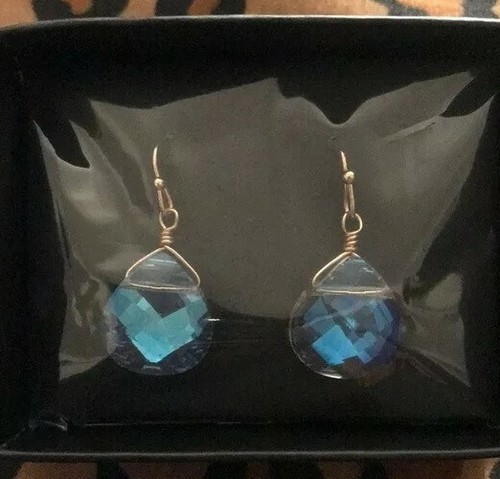Avon ~ Teardrop Earrings ~ Shimmering Blue ~ Alloy ~ 1" Drop Dangle Earrings