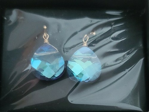 - Avon ~ Teardrop Earrings ~ Shimmering Blue ~ Alloy ~ 1" Drop Dangle Earrings
