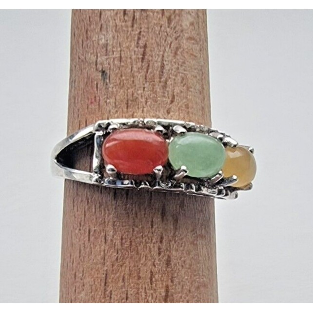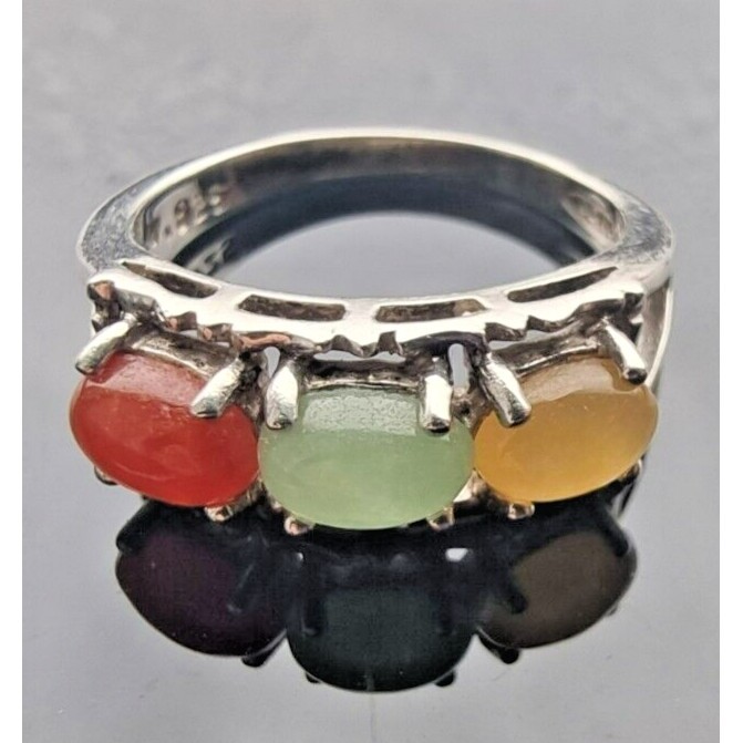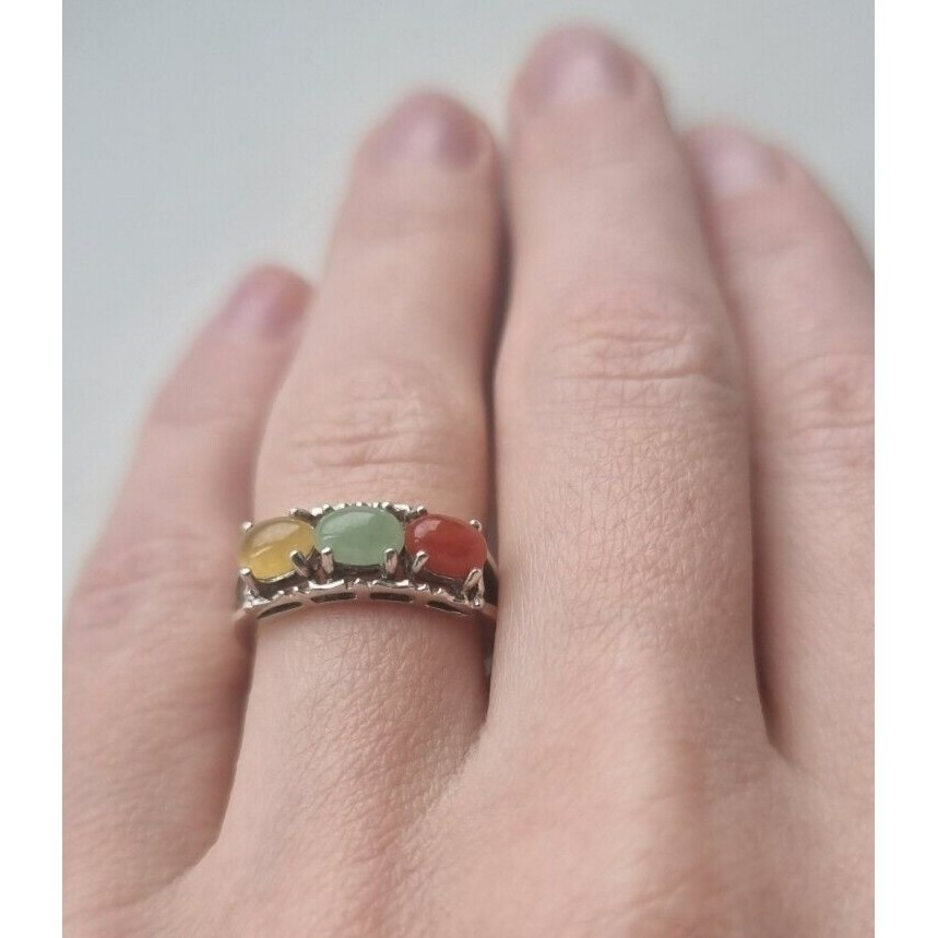 Avon Vintage 925 Sterling Silver Yellow, Green And Orange Jade Ring Size 6 At