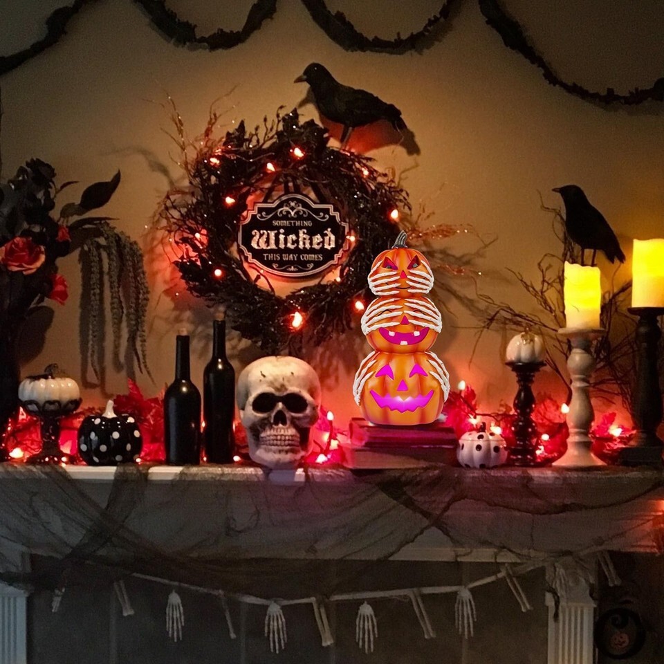 Perfect Halloween Indoor Decorations: The stacked pumpkin decor is 9.2 inches tall, perfect for Halloween indoor fireplace bedside decor porch table decorations. It will add a sense of mystery to your Halloween and brings endless fun, making it an ideal addition to Halloween parties and haunted houses