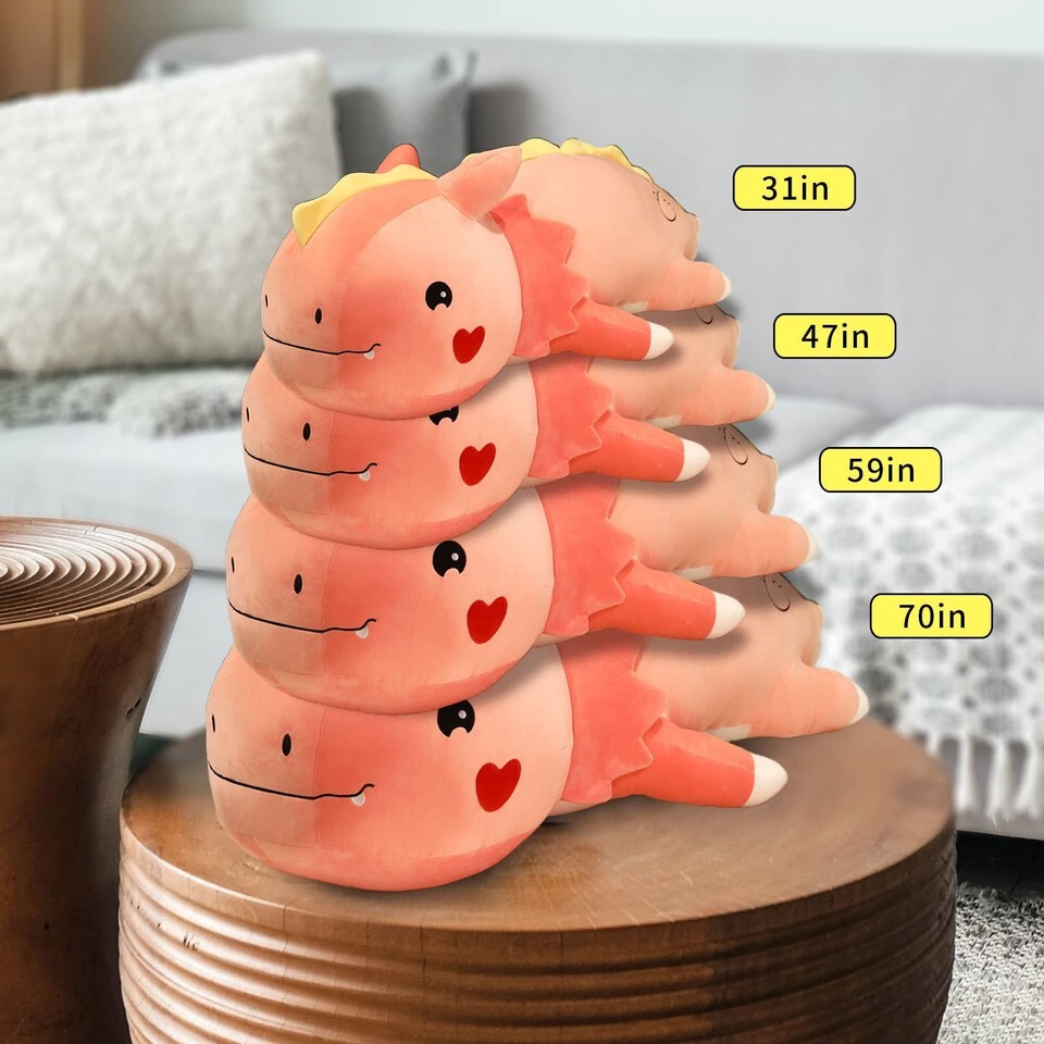SAFE MATERIAL: Super soft and fluffy axolotl plush stuffed animal , the axolotl plush made of plush PP cotton, the natural eco-friendly plush cotton, and filling, safe, soft, and friendly for children's skin. Popular dinosaur pillow, cute stuffed animals for your pillow collection.