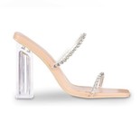 Sparkly straps and a transparent block heel make this sandal a glamorous addition to your look.