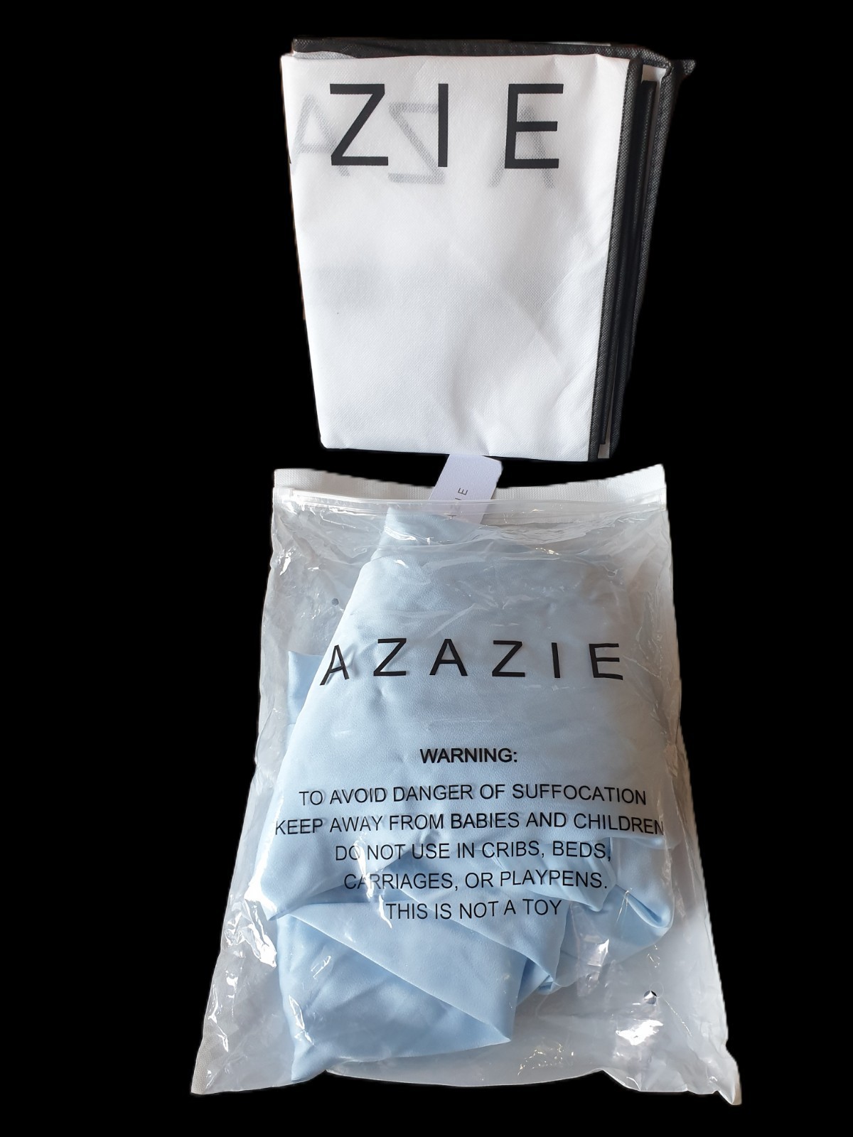 - Azazie Pelagia Mermaid Corset Convertible Dress Womens 14 Sky Blue Stretch Satin
