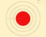 B2 - 50-foot slow fire pistol target. Bull's eye is red color. These targets are printed on tagboard paper. Quantity is 25 targets.