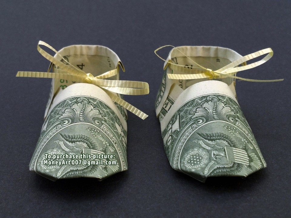 - BABY SHOE Money Origami Dollar Bill Cash Sculptor Bank Note Currency Gift