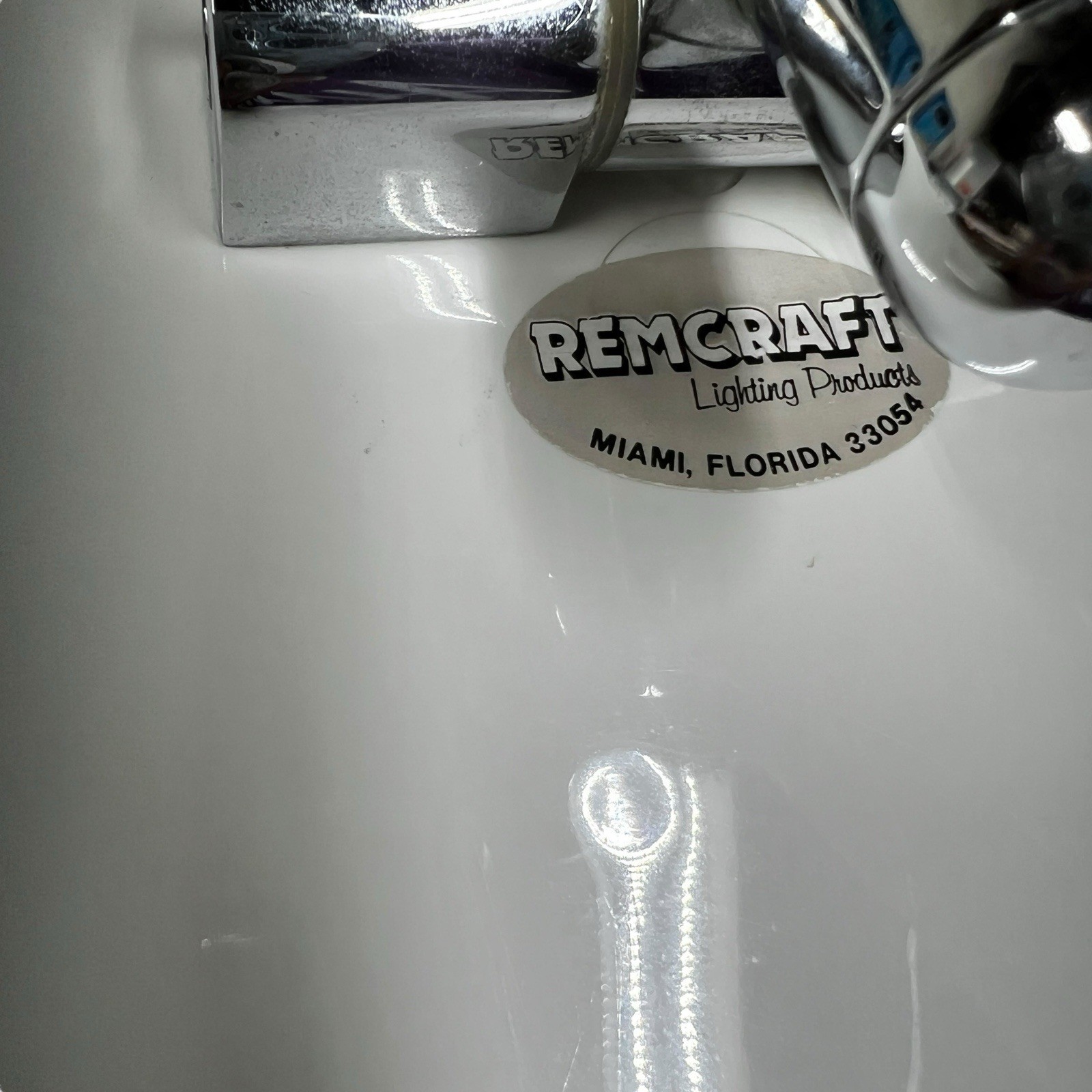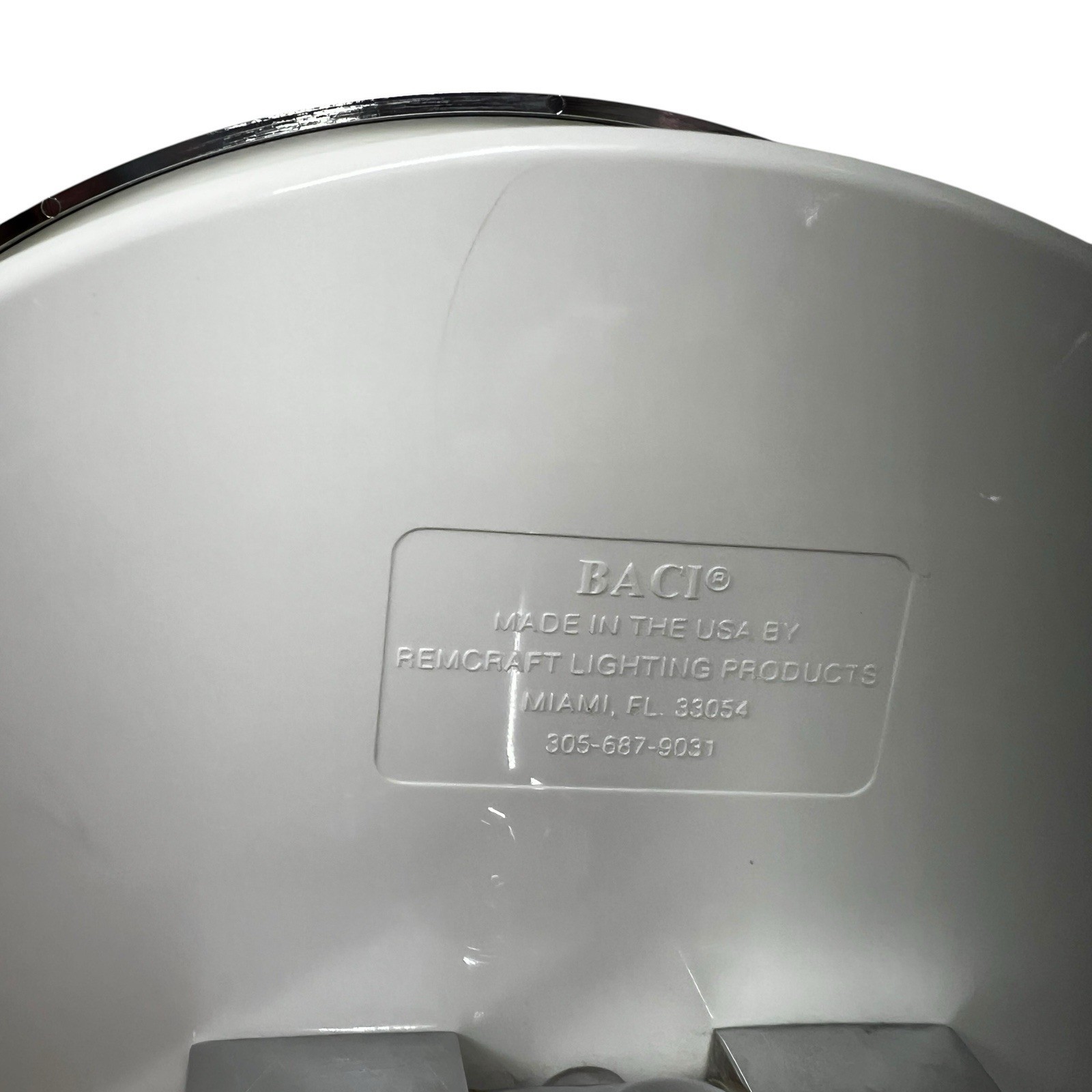 High-quality BACI wall-mounted lighted makeup mirror by Remcraft Lighting Products, Miami, FL. Features a polished chrome finish, dual-arm swivel design, and 9-inch round illuminated mirror with built-in on/off switch. Made in the USA, this luxury-grade mirror is commonly used in upscale hotels and homes. Mounting plate measures approx. 5? x 3.5?. Mirror diameter approx. 9?. Pre-owned in good working condition with light cosmetic wear (see photos). A durable and stylish addition to any vanity, bathroom, or dressing area.