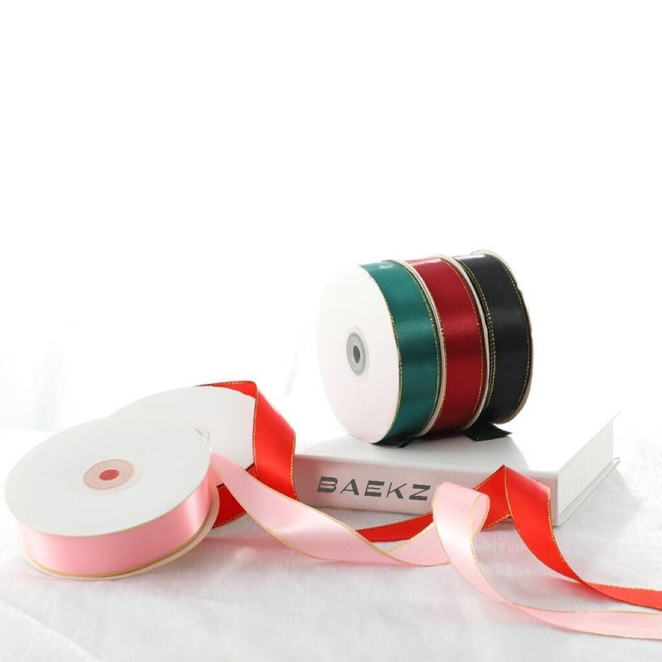 - BAEKZ 1in Black Satin Ribbon Gold Edged 50 Yd Roll Flower Gift Decor
