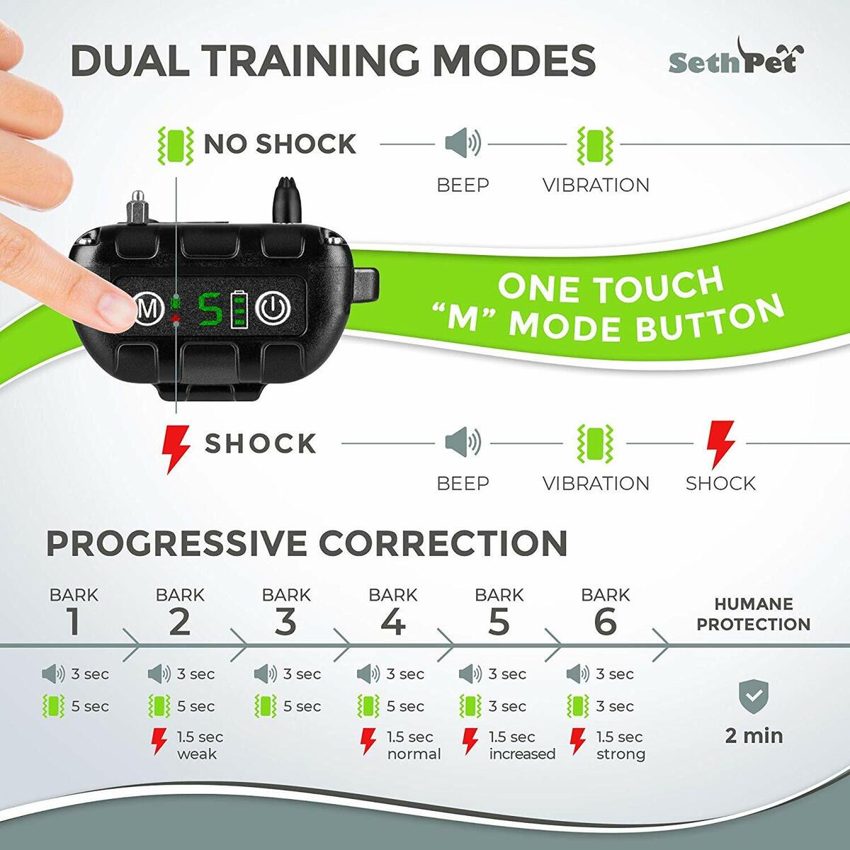 - BARK COLLAR by Seth Pet for Medium & Large Dogs - Beep Vibrate Shock Training