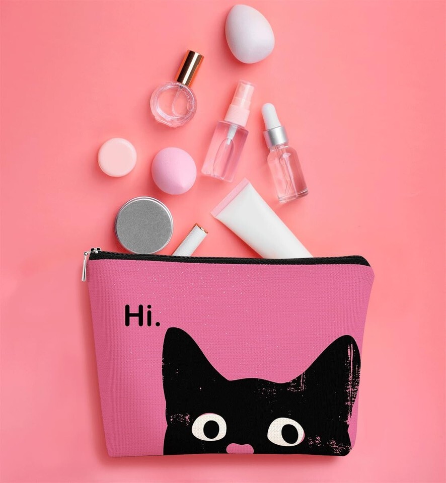 - BARPERY Hot Pink Cat Makeup Bag Travel Organizer Cosmetic Bag for Women