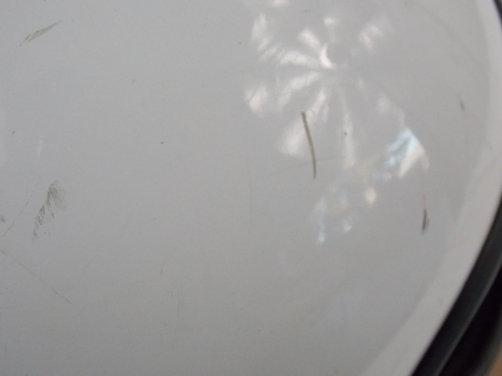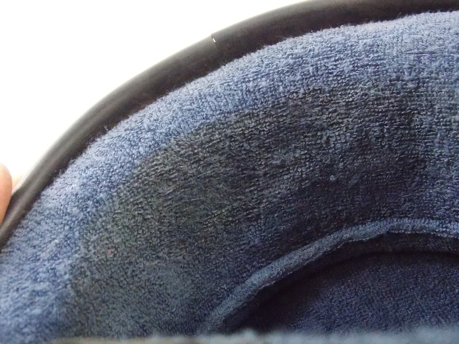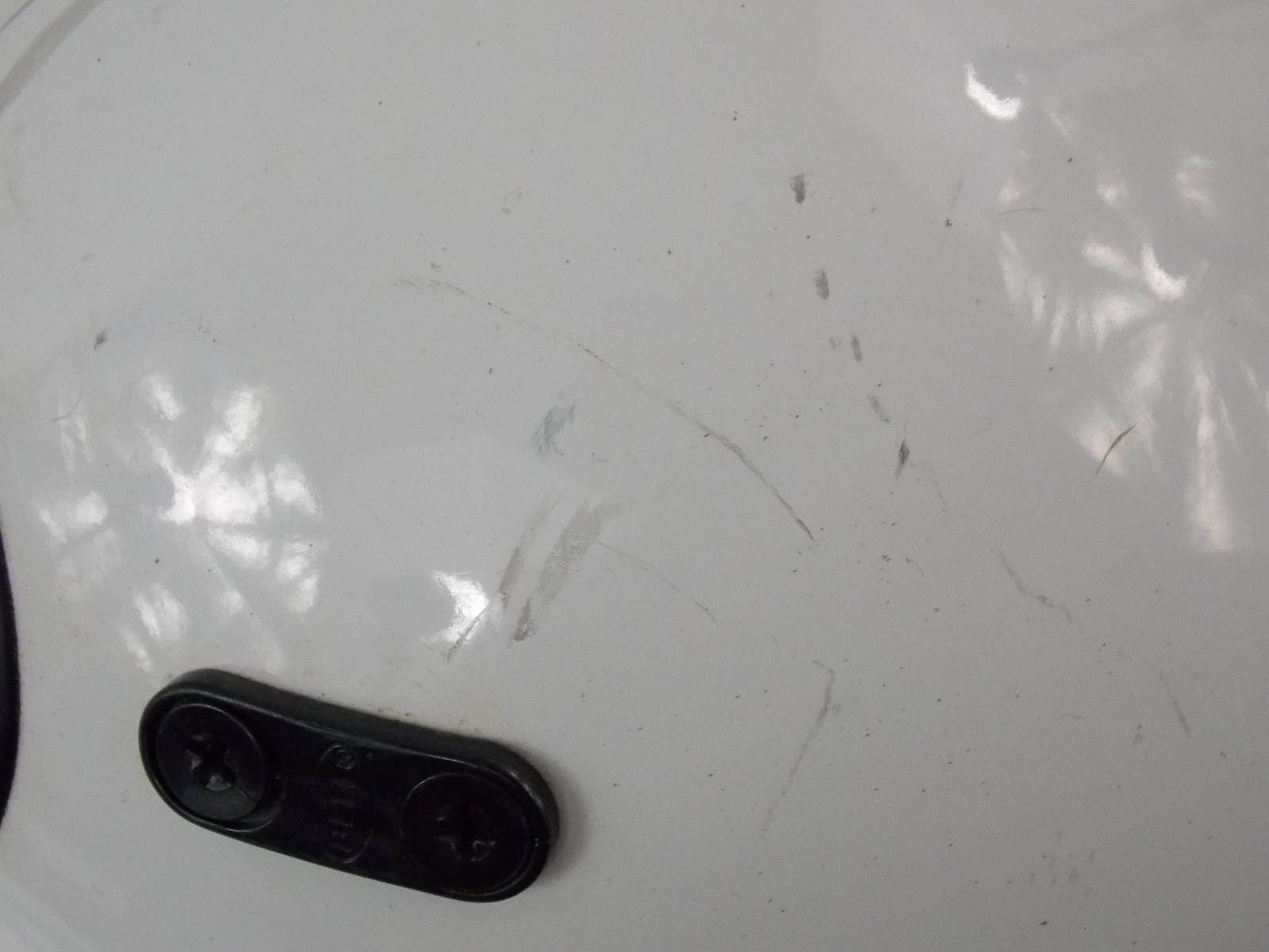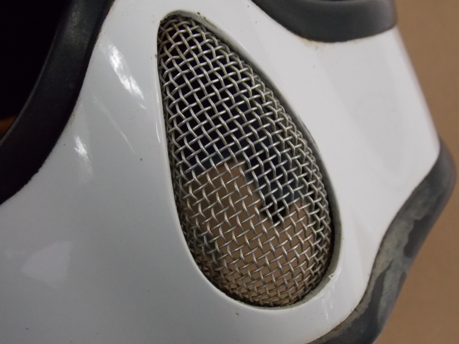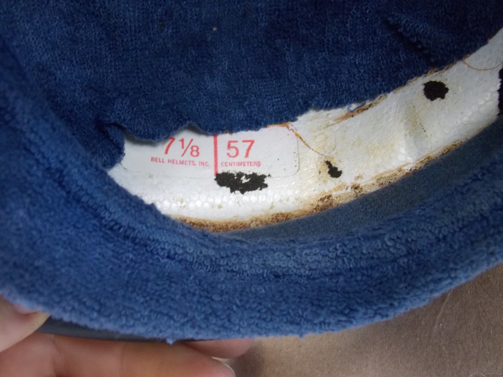 old helmet, inside cloth padding area is pretty rough and saggy looking it had that real thin flaky black foam crap i used compressed air to blow most of it out, it is what it is, front chin area has what looks like a crack in the facing other typical exterior blemishes, its a good wall hanger or restore it. its still worth saving.