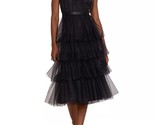 BETSY & ADAM Women's Sleeveless Tiered Mesh A-Line Dress Black Size 16 $299