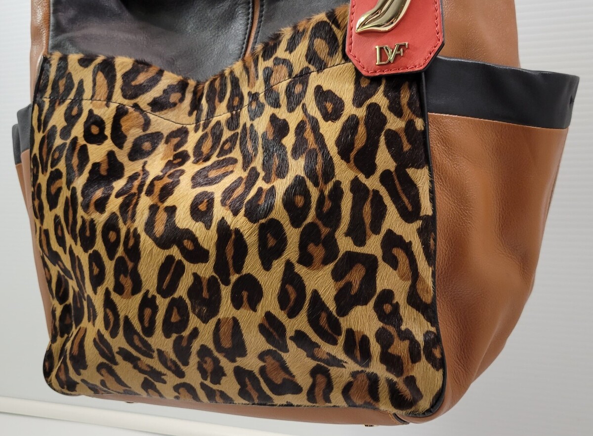 - BG) Diane Von Furstenberg Brown Leopard Print Hand Bag Purse