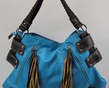 - BG) Woman Faux Pebble Blue Leather Slouchy Satchel Tassel Studded Hand Bag