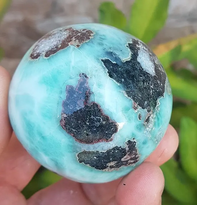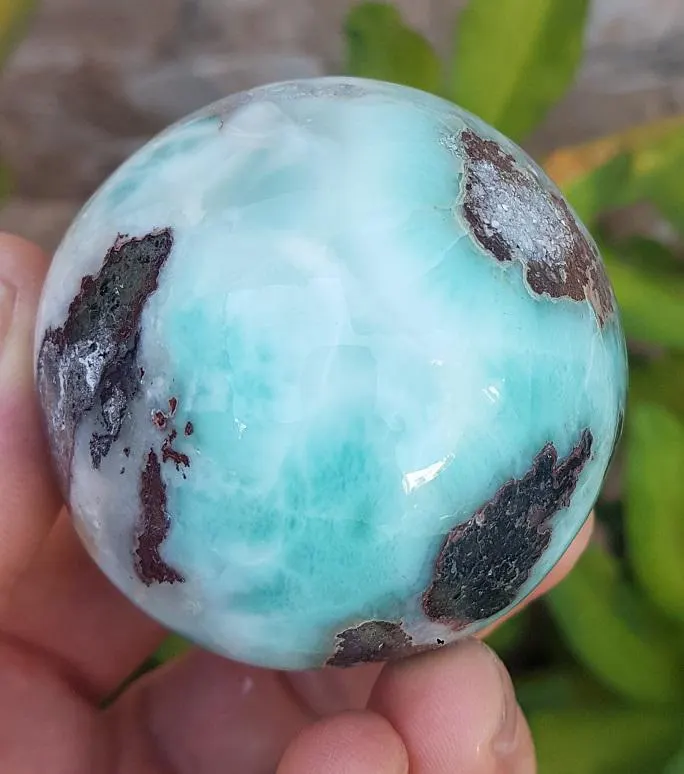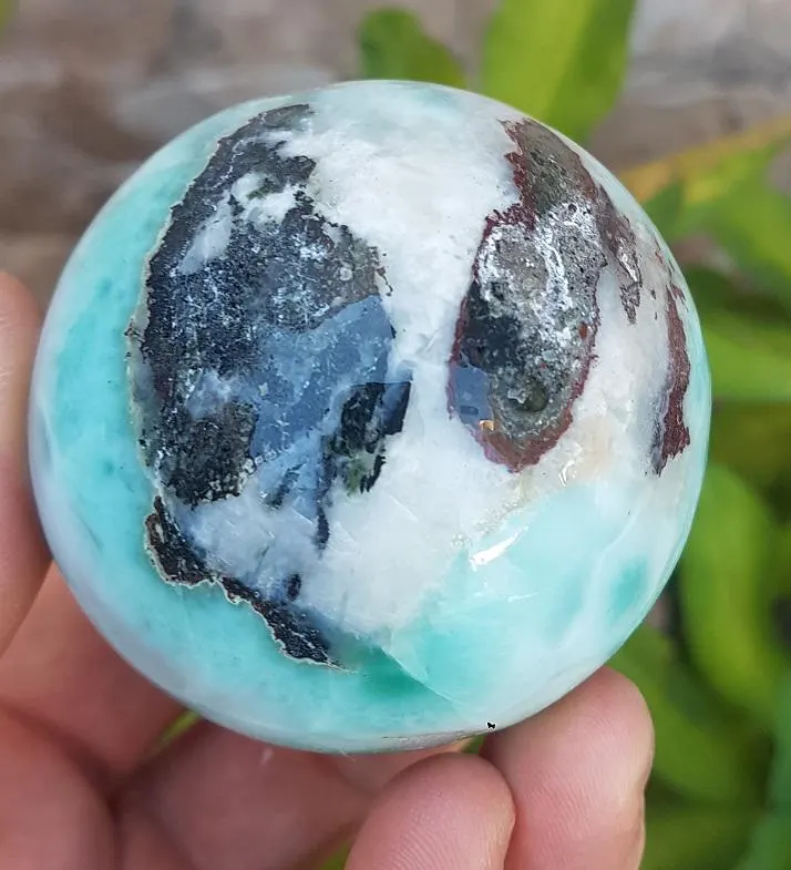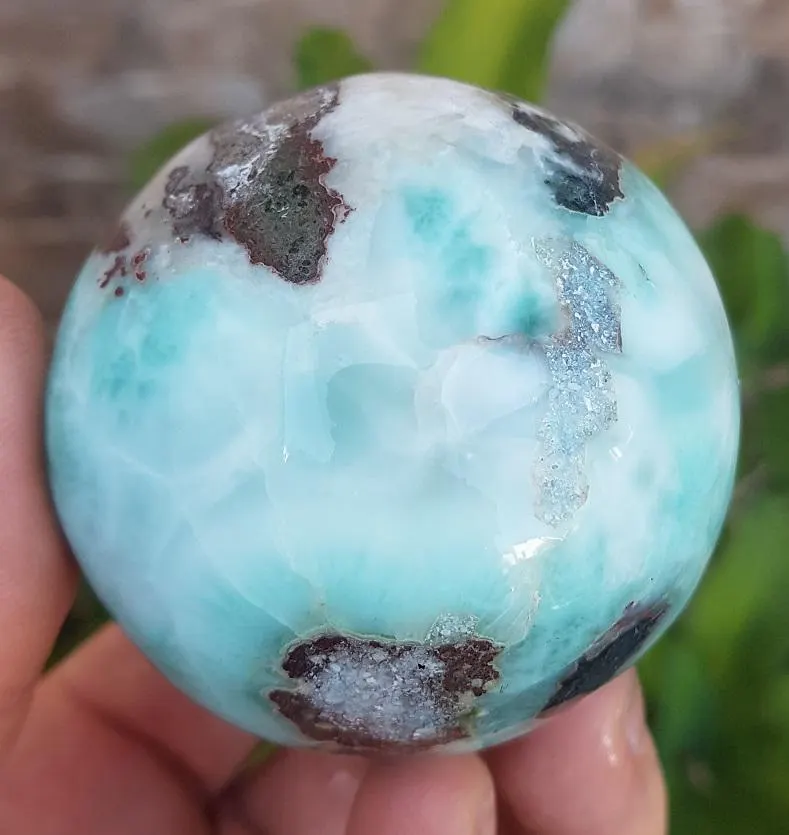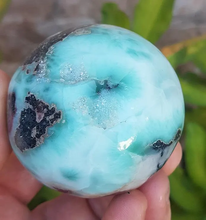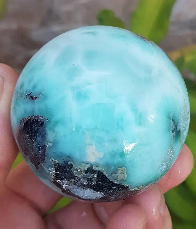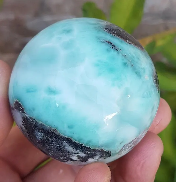 - BIG blue Larimar Gemstone Dominican Pectolite Sphere 363 grams (ru-11)