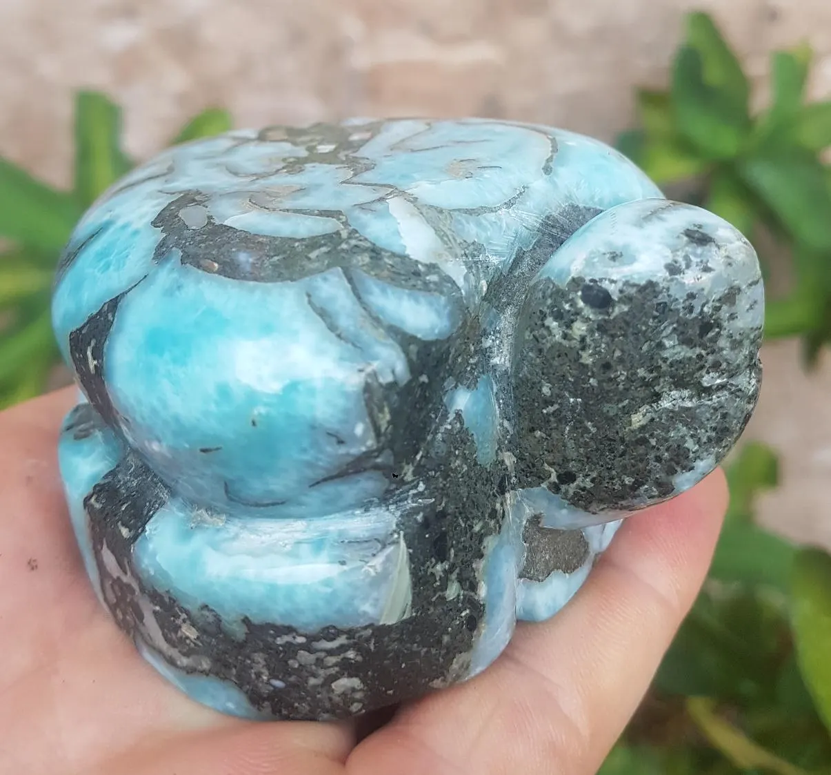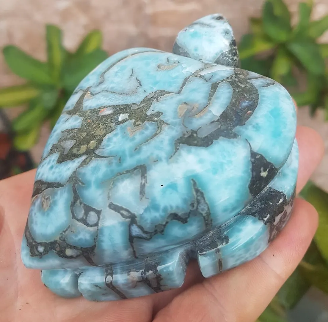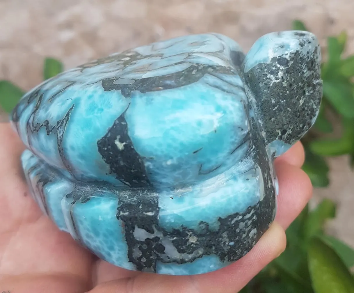 - BIGGEST LARIMAR handcarved Gemstone TURTLE for decoration 499 grams (cj-1)