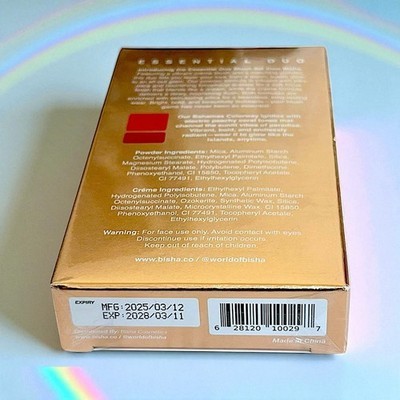 - BISHA Essential Duo Blush in Bahamas (peachy coral) CREME 0.14 OZ POWDER 0.28 OZ