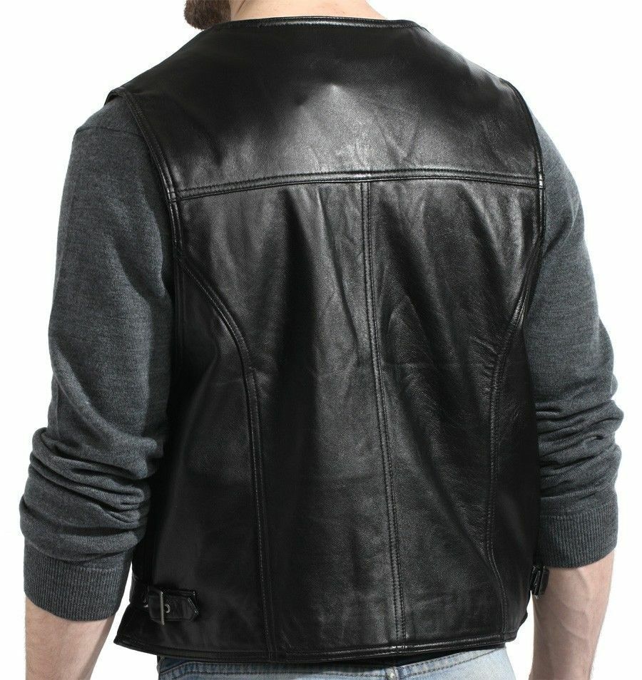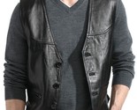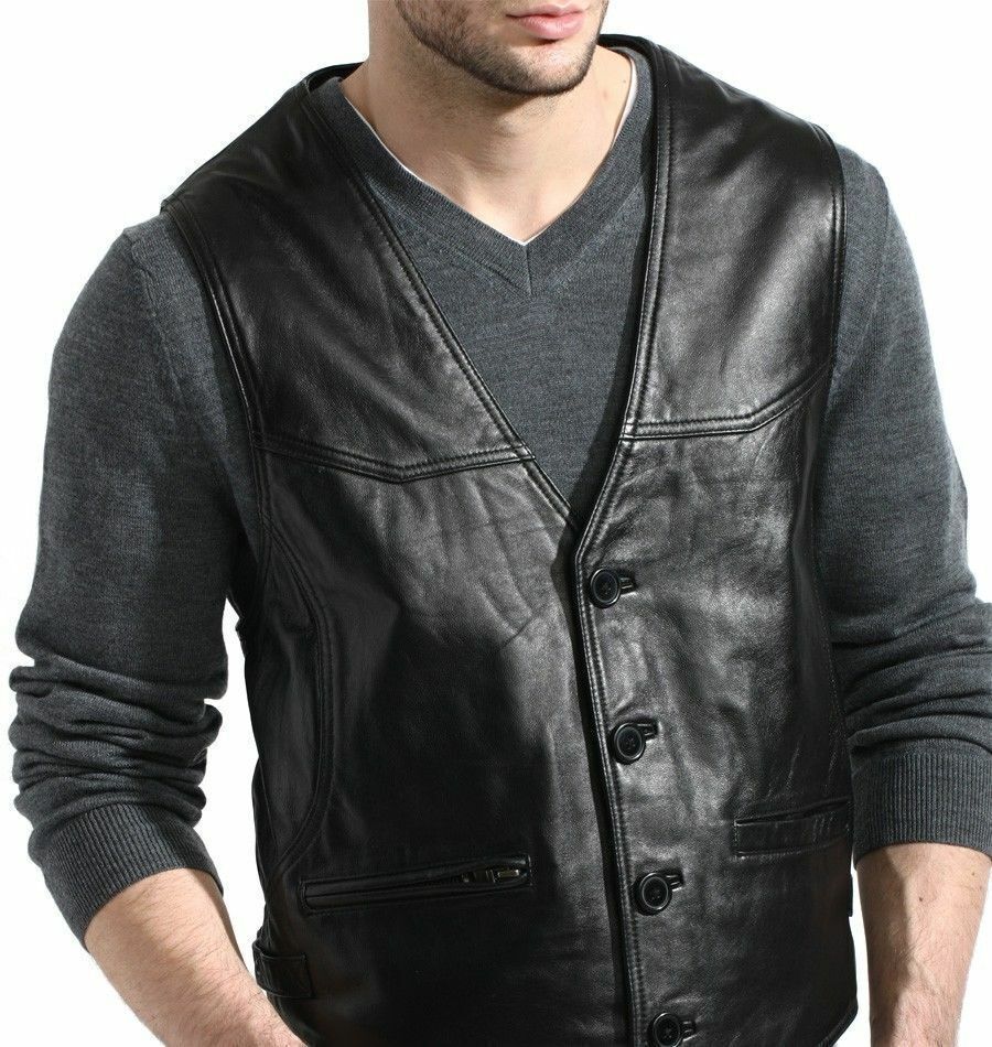 - BLACK Vest Coat Waistcoat Button Jacket Men Original Lambskin Leather Western