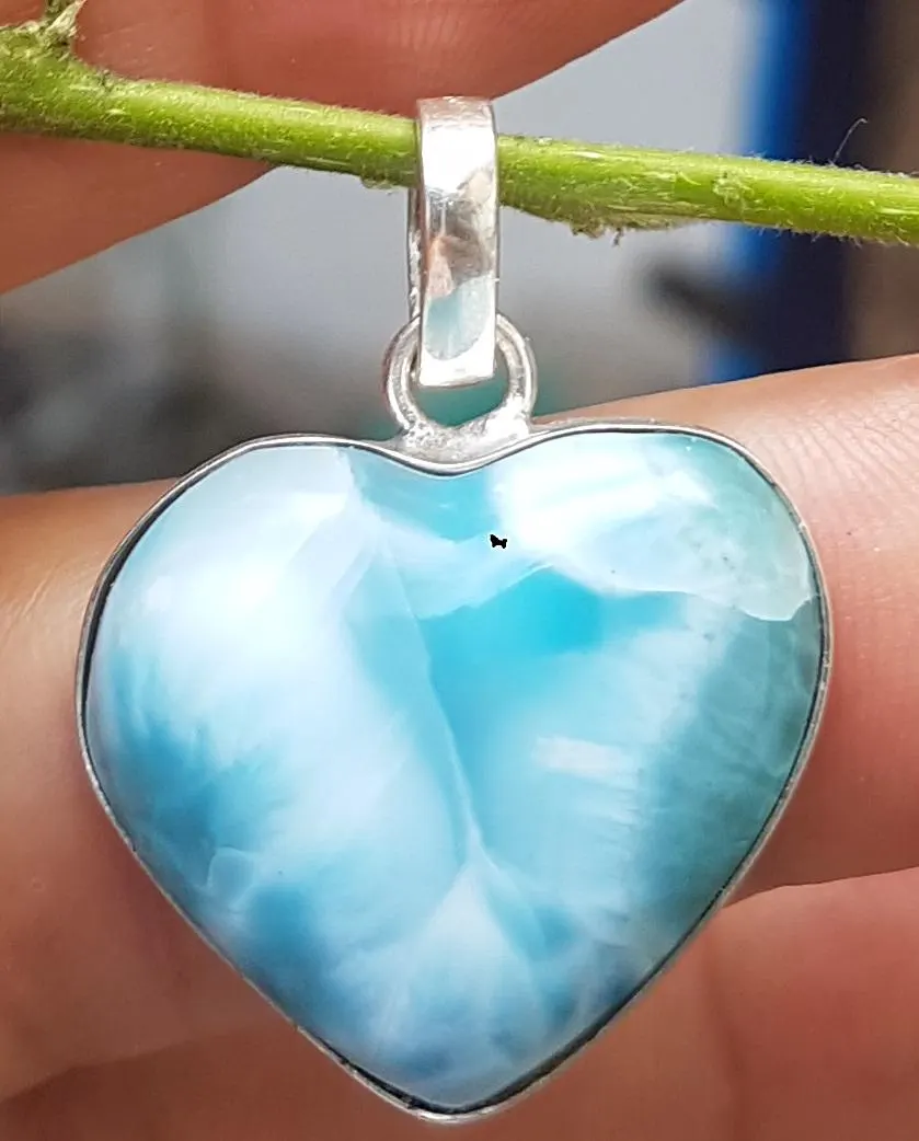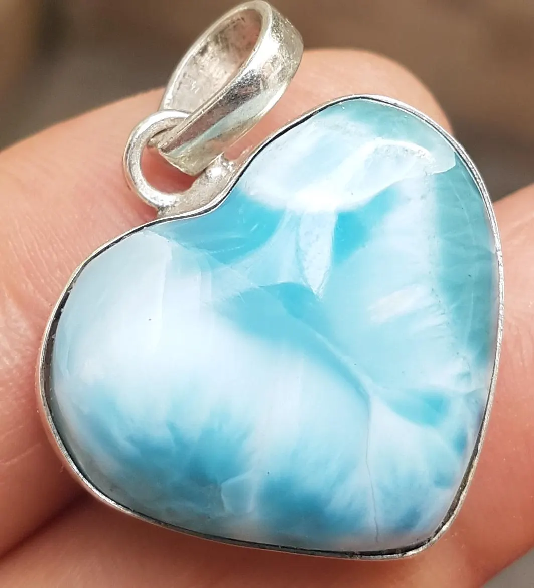 - BLUE LARIMAR handcarved Gemstone 925 sterling silver HEART pendant (larc-7)