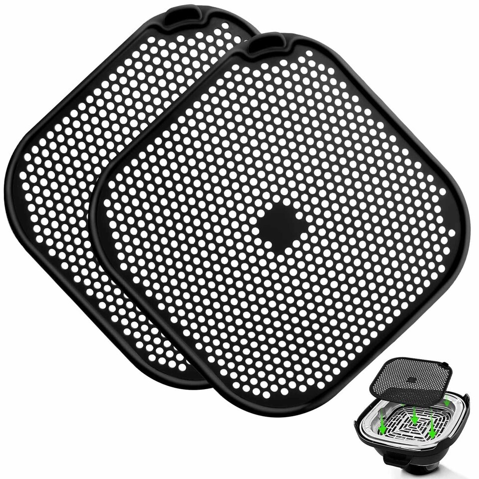 [2 Pack Black Set for Easy Rotation Cleaning] Includes two identical black splatter shields so you can use one while the other is being cleaned. This high-quality air fryer accessory features a smooth silicone surface that is easy to wipe or rinse clean, and both mats are dishwasher-safe for added convenience