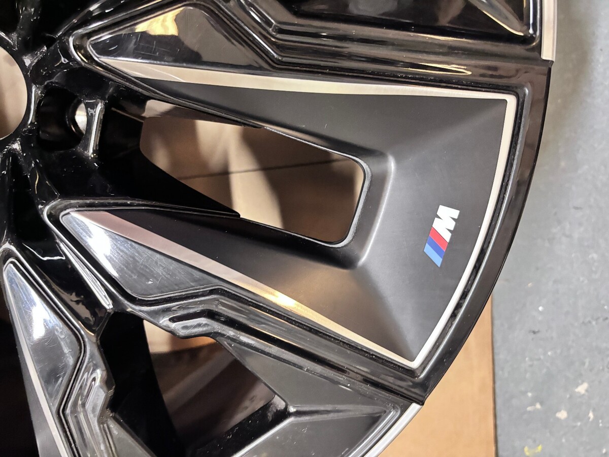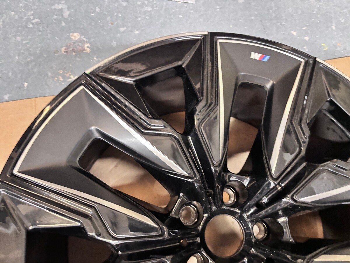 OEM BMW wheel 21x9 for 2023-2025 7 Series M G70. Wheel only, used with minor marks and scuffs as pictured. 5-lug aluminum with machined black and silver finish. Fits BMW 750, 760, 740. Ships FedEx Ground in the US; Global Shipping for international buyers. See photos.