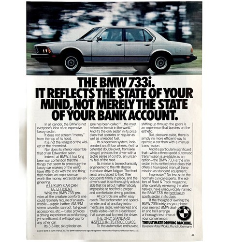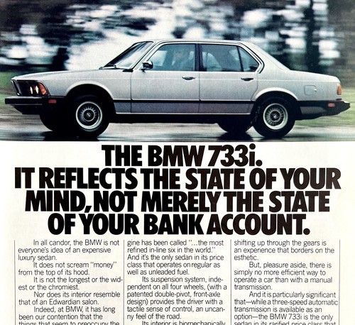 - BMW 733i Luxury Sports Sedan 1980 Advertisement Vintage Automobilia DWEE24