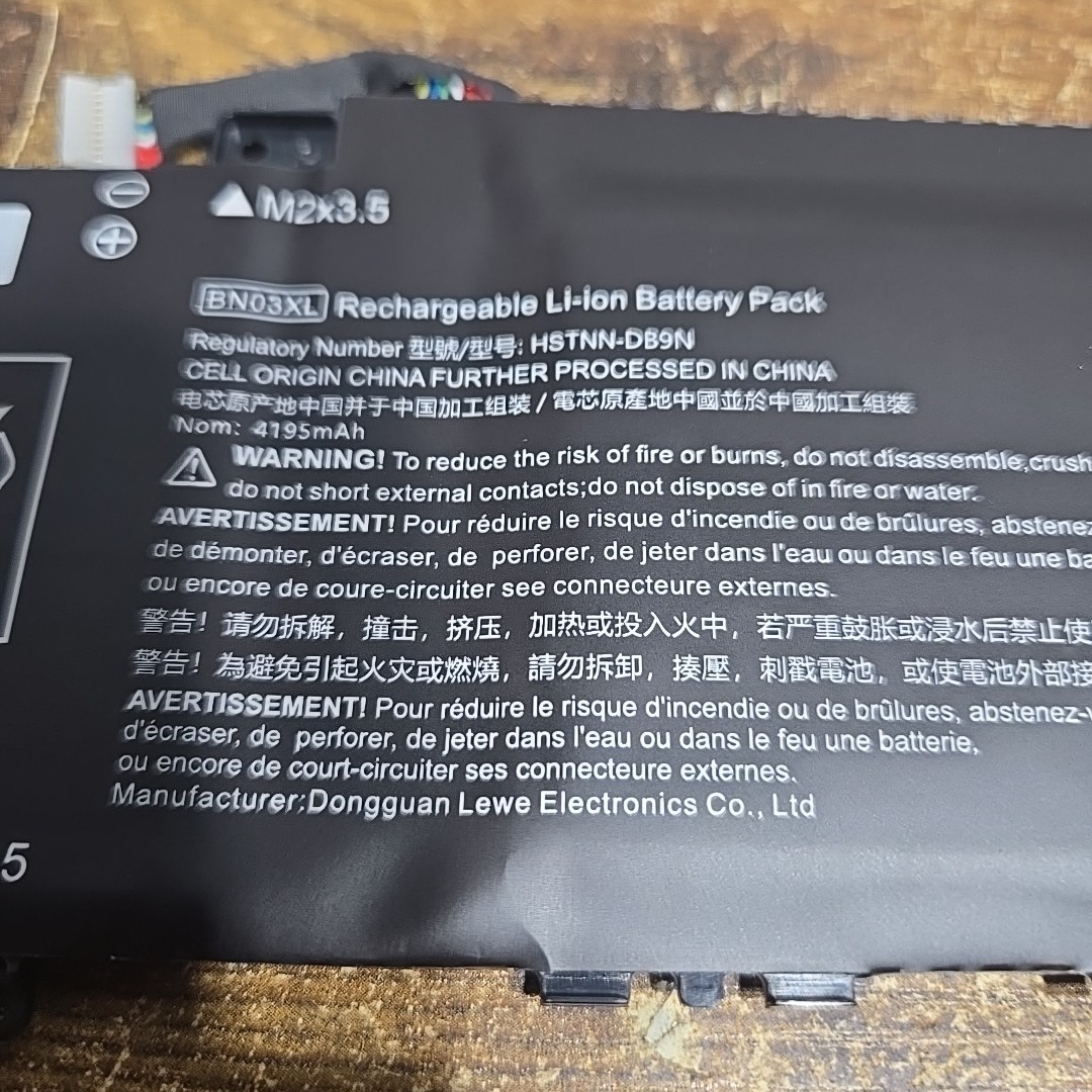 The BN03XL Battery for HP Envy x360 laptops is a high-quality AC/Standard LiPo battery with a 51Wh/4195mAh capacity, designed specifically for the HP ENVY X360 series. Produced by Champion, this black battery is compatible with various models such as 15m-ee013dx, HSTNN-OB1O, L76965-AC1, and L77034-005. With a voltage of 11.55V and 3 battery cells, this unit is a reliable and efficient choice for keeping your laptop powered up for extended periods of time.