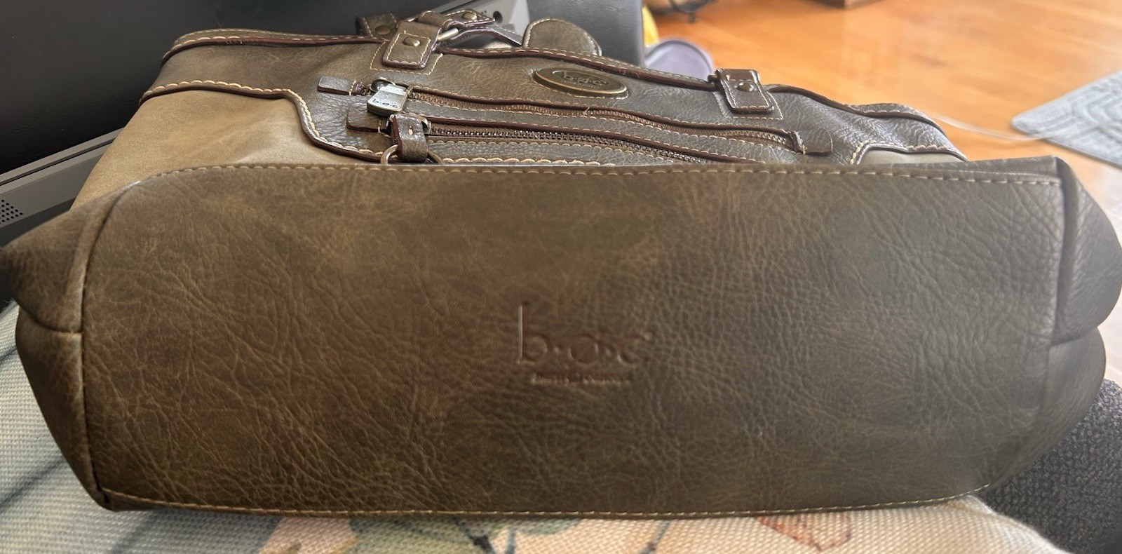 - BOC Born Concept Handbag Tote Purse Army Olive Green w/ Brass Accents