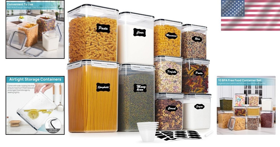- BPA-Free Airtight Canisters - 10-Piece Flour and Sugar Storage Organizer Set