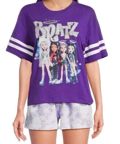 - BRATZ ~ 2 Piece Purple Tie Dye Shorts Graphic Tee Lounge Set ~ Size 2XL (18-20)