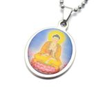 - BUDDHA NECKLACE Stainless Steel Color Pendant 23" Ball Chain Buddhist Jewelry